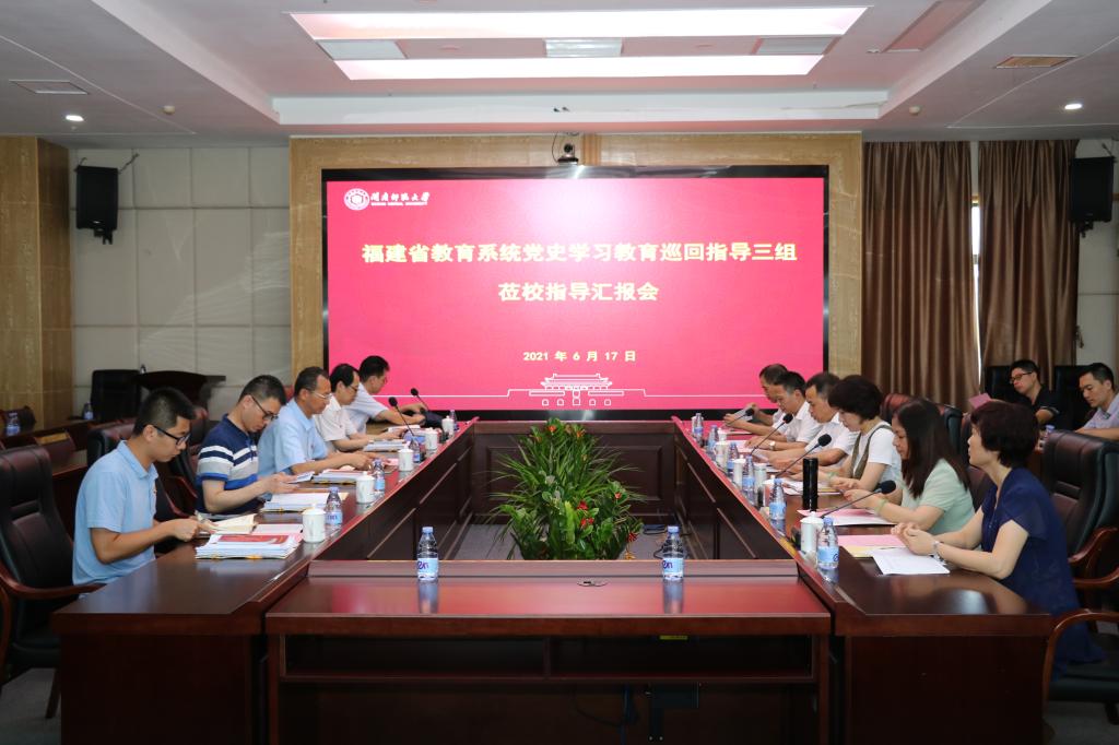 6月17日下午,福建省教育系統黨史學習教育巡回指導三組一行5人在巡回指導組組長、廈門大學黨委原副書記賴虹凱的帶領下蒞臨我校指導黨史學習教育工作。巡回指導匯報會在科技樓會議室舉行。校黨委書記吳彬鏹在會前與指導組深入交流了學校黨史學習教育開展情況及下階段開展黨史學習教育的重點任務。校黨史學習教育領導小組辦公室副主任,校黨史學習教育巡回指導組組長及校黨史學習教育領導小組辦公室有關同志參加匯報會。