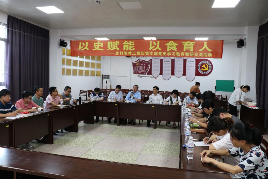 巡回指導組一行參觀生物科學與技術學院教工第四黨支部“以史賦能,以食育人”——黨史學習教育教研交流活動