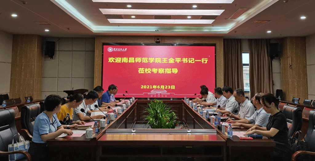 6月23日下午,南昌師范學院黨委書記王金平一行來我校就研究生校際聯合培養情況進行交流調研。校黨委書記吳彬鏹,黨委常委、副校長張龍海出席交流座談會。