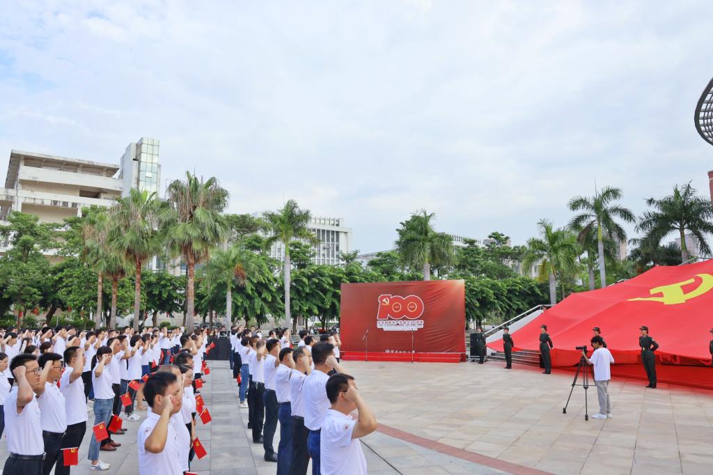 活動中,文學(xué)院的學(xué)生黨員代表們集體朗誦了《赤起東方萬象新》;數(shù)學(xué)與統(tǒng)計學(xué)院2020級學(xué)科教學(xué)(數(shù)學(xué))專業(yè)研究生何燕同志代表新黨員作了發(fā)言;全體黨員齊聲高唱《沒有共產(chǎn)黨就沒有新中國》;生物科學(xué)與技術(shù)學(xué)院食品專業(yè)黨員師生代表為中國共產(chǎn)黨100周歲生日和新黨員同志特別精心制作了長度為1.921米的政治生日主題蛋糕,寓意偉大的中國共產(chǎn)黨成立于1921年這一開天辟地的大事件,共同祝福偉大的中國共產(chǎn)黨百年華誕生日快樂!祝福偉大的祖國繁榮昌盛!祝福閩南師范大學(xué)的明天更加輝煌燦爛!