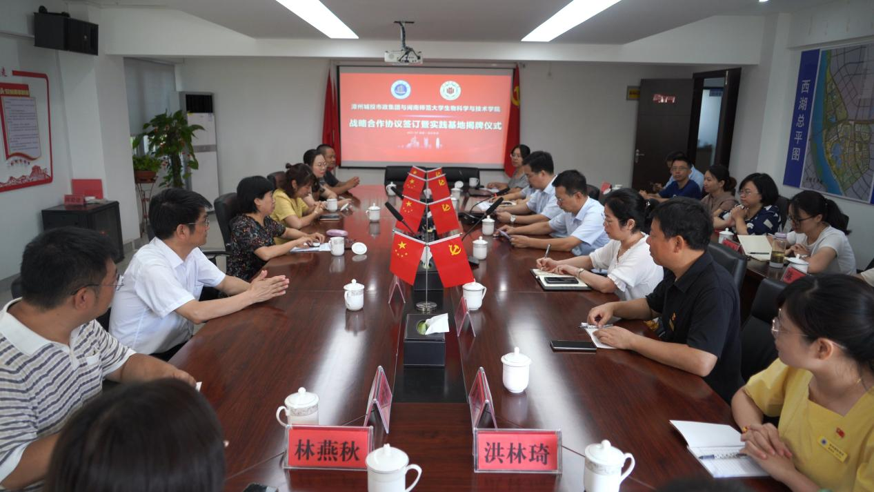 7月27日,生物科學與技術學院與漳州城投市政集團戰略合作協議簽訂暨實踐基地揭牌儀式在漳州城投市政集團有限公司舉行。福建漳州城投集團黨委書記、董事長曾凡沛,總工程師林美鳳、市政集團總經理葉振文等漳州城投集團等相關人員,生物科學與技術學院院長陸鑾眉、黨委副書記陳文婷及風景園林系相關負責人參加儀式。