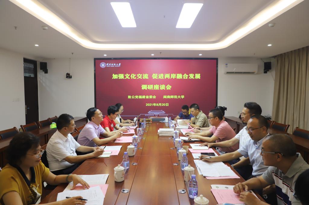 致公黨廈門市委教育文化委員會委員、集美區政協常委、福建省連橫文化研究院和連橫書畫院理事長連明富,致公黨漳州市委會專職副主委兼秘書長王淑娟,福州外語外貿學院黨委副書記、副校長徐國立等相關人員陪同調研,我校統戰部、科研處、閩南文化研究院、圓山學院等相關單位負責人參加座談。