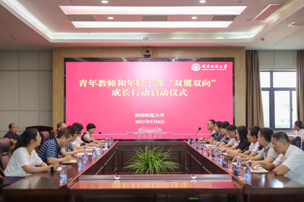 9月8日下午,閩南師范大學(xué)青年教師和年輕干部“雙翼雙向”成長(zhǎng)行動(dòng)啟動(dòng)儀式在科技信息樓會(huì)議室舉行。校黨委副書記鐘發(fā)亮出席會(huì)議,校紀(jì)委、黨委組織部、黨委宣傳部、黨委統(tǒng)戰(zhàn)部、教師工作部(人事處)等相關(guān)職能部門負(fù)責(zé)人,掛職派出、接收單位負(fù)責(zé)人以及第一批掛職人員等30余人參加啟動(dòng)儀式。