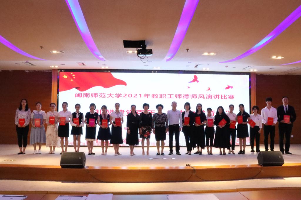 10月28日下午,我校在逸夫圖書館五樓報告廳舉辦2021年教職工師德師風演講比賽。校黨委常委、副校長、校工會主席蔣一婷出席活動并為獲獎選手頒獎,學校相關職能部門負責人、各二級工會主席和各單位師生代表共約300人到場觀看比賽。