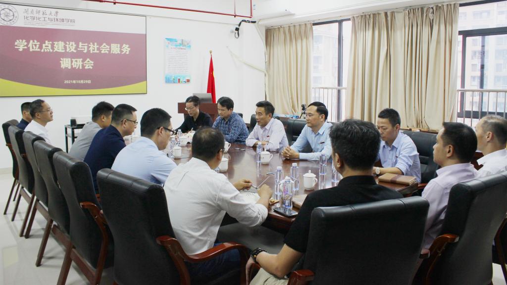 學校辦公室、學科建設與研究生工作處、教師工作部、科研處、社會合作處、國有資產管理處等職能部門負責人陪同調研,化學化工與環境學院領導班子成員及部分學科帶頭人、學術骨干參加調研座談會。