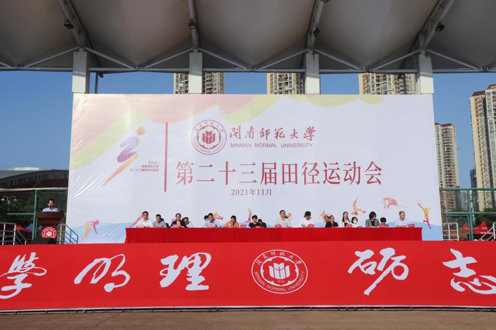 鐘發亮在開幕式上致辭。鐘發亮指出,體育強則中國強,國運興則體育興。今年是具有重大歷史意義的一年,中國共產黨百年華誕、“十四五”規劃開局起步、全面建設社會主義現代化國家新征程開啟。廣大師生是實現下一個百年奮斗目標的生力軍,既要有文明之精神,更要有“野蠻”之體魄。希望全體師生在緊張的工作和勤奮的學習之余,能夠堅持體育鍛煉,保持健康的生活方式,真正做到“每天鍛煉一小時,健康工作五十年,幸福生活一輩子”,在體育運動中燃燒青春“卡路里”、跑出青春“加速度”、展現青春“正能量”,激揚健康活力,永葆青春朝氣。希望全體運動員能夠發揚“更快、更高、更強、更團結”的體育精神,賽出風格、賽出水平,充分展現當代閩南師大人充滿健康活力的良好風貌,以更加飽滿的精神狀態、更加積極的奮斗姿態投入到特色鮮明、多學科融合發展的高水平師范大學建設中。