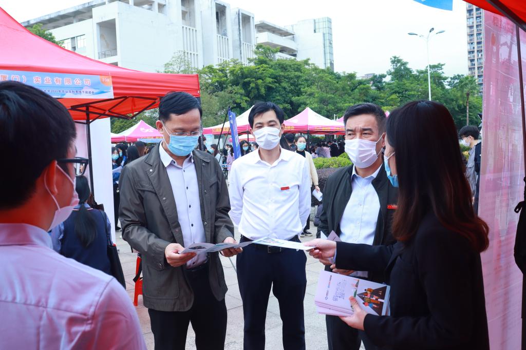 為貫徹落實黨中央、國務院“穩就業”“保就業”決策部署,深入開展黨史學習教育“我為群眾辦實事”實踐活動,進一步拓寬畢業生就業渠道,發揮校園招聘主渠道作用,由我校和漳州市人力資源和社會保障局聯合主辦的2021年大眾城市聯合招聘高校畢業生秋季專場活動暨閩南師范大學2021年畢業生秋季線下雙選會于11月18日下午在我校弦歌廣場舉辦。校黨委書記吳彬鏹、校長李順興、黨委副書記鐘發亮深入校園雙選會現場指導就業工作。