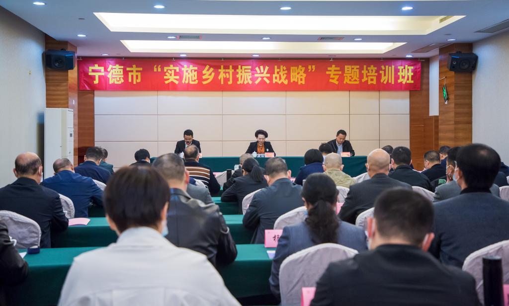 11月24日上午,由寧德市委組織部主辦,我校繼續教育學院承辦的寧德市“實施鄉村振興戰略”專題培訓班在漳州東南花都開班。校黨委常委、副校長蔣一婷出席開班式并講話。