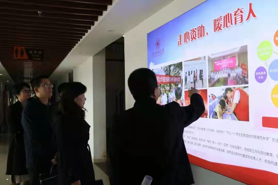 隨后,調(diào)研組實地走訪察看了我校學(xué)生資助辦事大廳及資助檔案管理室,參觀了“走心資助,暖心育人”資助體系內(nèi)容,詳細了解我校資助育人工作開展情況。