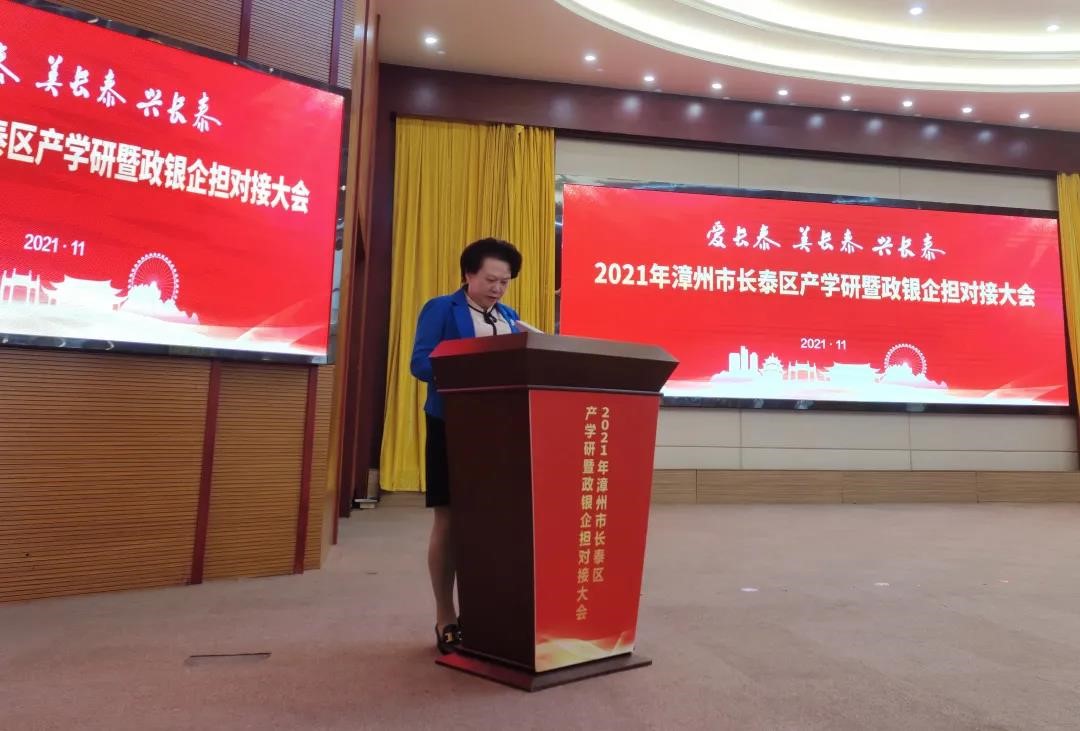 11月29日,漳州市長泰區舉辦產學研暨政銀企擔對接大會。大會由中共長泰區委和長泰區人民政府主辦,校黨委常委、副校長蔣一婷出席會議并代表參會高校作交流發言。社會合作處、科研處、化學化工與環境學院、物理與信息工程學院和生物科學與技術學院相關負責人、專家教授參加活動。