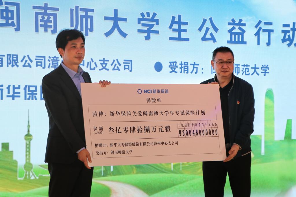 鐘發(fā)亮表示,新華保險(xiǎn)一如既往為我校學(xué)子提供優(yōu)質(zhì)的保險(xiǎn)服務(wù),致力于福建平安高校的建設(shè)工作,自覺擔(dān)負(fù)“為社會(huì)增添和諧安寧力量”的社會(huì)使命,把“為民辦實(shí)事”落實(shí)落地,踐行了企業(yè)的社會(huì)責(zé)任,彰顯了企業(yè)的擔(dān)當(dāng),展現(xiàn)了企業(yè)熱心參與公益事業(yè)的情懷。學(xué)校將扎實(shí)推進(jìn)平安校園建設(shè),不斷提高平安校園建設(shè)質(zhì)效,為全面深化教育改革、推進(jìn)學(xué)校各項(xiàng)事業(yè)發(fā)展創(chuàng)造良好環(huán)境。