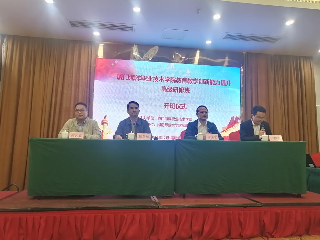 為全面貫徹落實(shí)《國(guó)家職業(yè)教育改革實(shí)施方案》《全面深化新時(shí)代教師隊(duì)伍建設(shè)改革的意見(jiàn)》等文件精神,由繼續(xù)教育學(xué)院承辦的廈門(mén)海洋職業(yè)技術(shù)學(xué)院教育教學(xué)創(chuàng)新能力提升高級(jí)研修班于12月15日在漳州開(kāi)班。校黨委常委、副校長(zhǎng)張龍海,廈門(mén)海洋職業(yè)技術(shù)學(xué)院副校長(zhǎng)馬國(guó)玄出席開(kāi)班式。