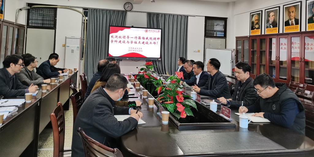 12月21-23日,校黨委書記吳彬鏹,校黨委副書記、校長李順興先后到物理與信息工程學院、法學院、生物科學與技術學院、馬克思主義學院和新聞傳播學院調研指導學科和學位點建設工作,聯系學院的校黨委副書記鐘發亮、肖慶偉和校紀委書記戴???,以及分管學科建設工作的副校長張龍海分別出席調研座談會。各學院黨政班子成員和教師代表,以及學校辦公室、教師工作部、科研處等部門負責人參加調研座談會。