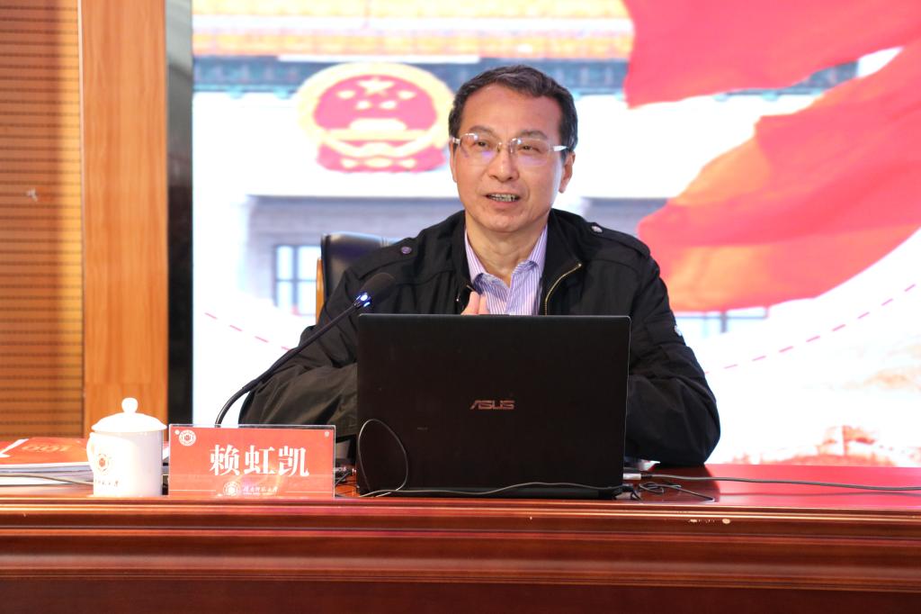 1月13日下午,省教育系統(tǒng)黨史學(xué)習(xí)教育巡回指導(dǎo)三組組長(zhǎng)賴(lài)虹凱來(lái)我校宣講黨的十九屆六中全會(huì)精神。宣講會(huì)在逸夫圖書(shū)館五樓報(bào)告廳舉行。全體在家校領(lǐng)導(dǎo)、全校中層干部,各民主黨派、統(tǒng)戰(zhàn)團(tuán)體負(fù)責(zé)人,校黨史學(xué)習(xí)教育巡回指導(dǎo)組全體成員,黨史學(xué)習(xí)教育領(lǐng)導(dǎo)小組辦公室全體成員和部分師生代表,省教育系統(tǒng)黨史學(xué)習(xí)教育巡回指導(dǎo)三組成員參加宣講會(huì)。會(huì)議由校黨委副書(shū)記、黨史學(xué)習(xí)教育領(lǐng)導(dǎo)小組副組長(zhǎng)肖慶偉主持。