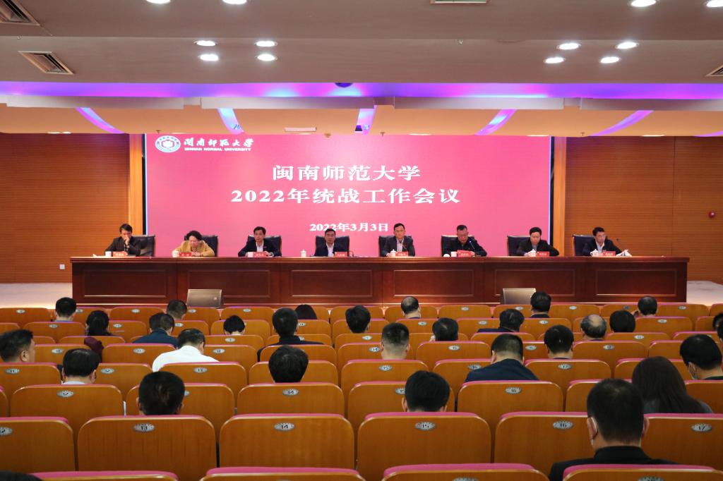 會議傳達了全國、全省統戰部長會議精神,并對學校2022年統戰工作進行部署。會議強調,統一戰線是我們黨凝聚人心、匯聚力量的政治優勢和戰略方針,要堅持凝心聚力、加強思想引領,堅持穩中求進做好統戰工作。做好2022年學校統戰工作,要重點把握以下幾個方面重點任務。一要突出思想政治引領,積極引導統戰干部和統一戰線廣大成員深入學習貫徹習近平總書記關于加強和改進統一戰線工作的重要思想、黨的十九屆六中全會精神,把迎接黨的二十大、學習貫徹黨的二十大精神作為重大政治任務,組織好統一戰線迎接黨的二十大系列活動。二要突出黨的全面領導,認真貫徹落實《中國共產黨統一戰線工作條例》和福建省《實施意見》,壓實統戰工作主體責任,把黨的領導體現在統一戰線各領域各方面,不斷提升統戰工作科學化規范化水平。三要突出新擔當新作為,以各民主黨派支部換屆為契機,提高民主黨派自身建設和履職意識,引導黨外人士積極建言獻策,為學校改革發展貢獻智慧。四要突出安全穩定的底線,把握民族宗教的重點難點問題,加強宗教政策與知識的宣傳,強化互聯網宗教事務的管理,主動肩負起防風險、保安全、促發展的政治責任。五要突出整體謀劃與創新,立足學校統戰優勢,進一步凝練特色與品牌,提升統戰工作影響力,不斷激發二級統戰工作的活力,推動全校統戰工作提質增效。