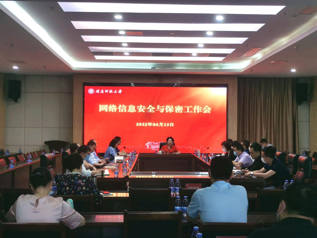 4月13日下午,我校在科信樓會議室召開網絡信息安全與保密工作會及全國保密宣傳教育月暨“4.15”全民國家安全教育日保密宣傳活動專題部署會。校黨委常委、副校長、校保密工作委員會主任蔣一婷出席會議,學校保密工作委員會全體成員、各二級學院黨委負責人參加會議。會議由校保密工作委員會辦公室主任羅炎成主持。