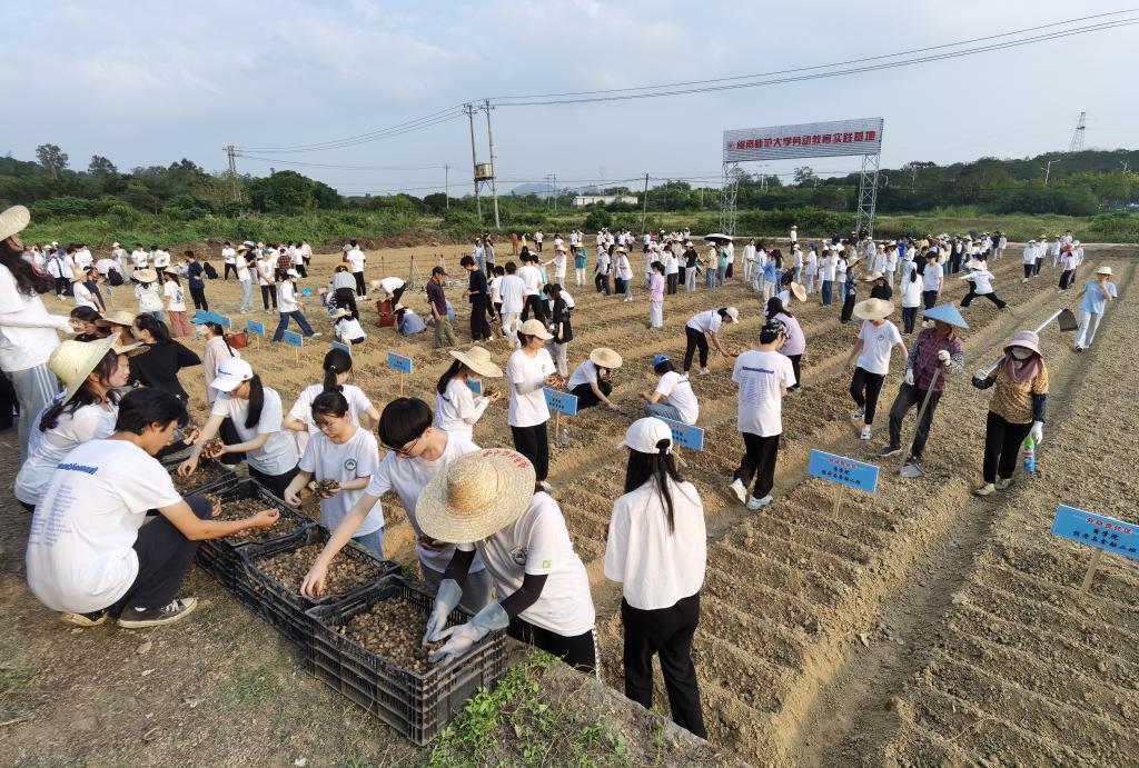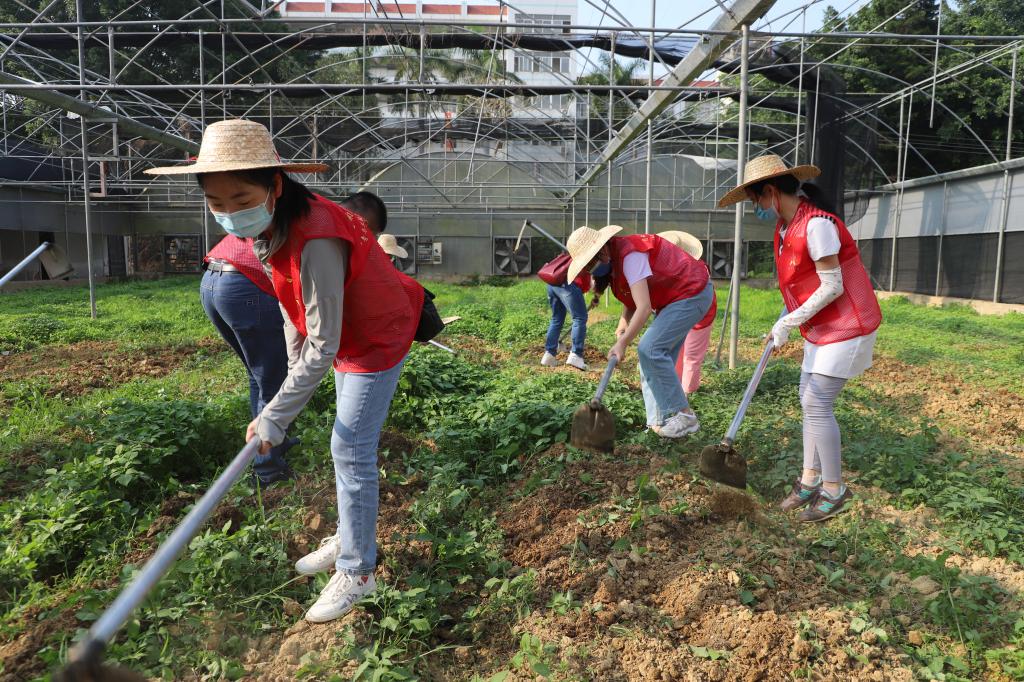 最后,張龍海副校長與教務(wù)處相關(guān)人員、商學院相關(guān)教師、生物科學與技術(shù)學院相關(guān)教師、“青馬工程”青年干部培訓班學員、商學院學生代表在《南泥灣》歡快的旋律中,共同開展了勞動實踐,在勞動實踐基地種下了花苗。