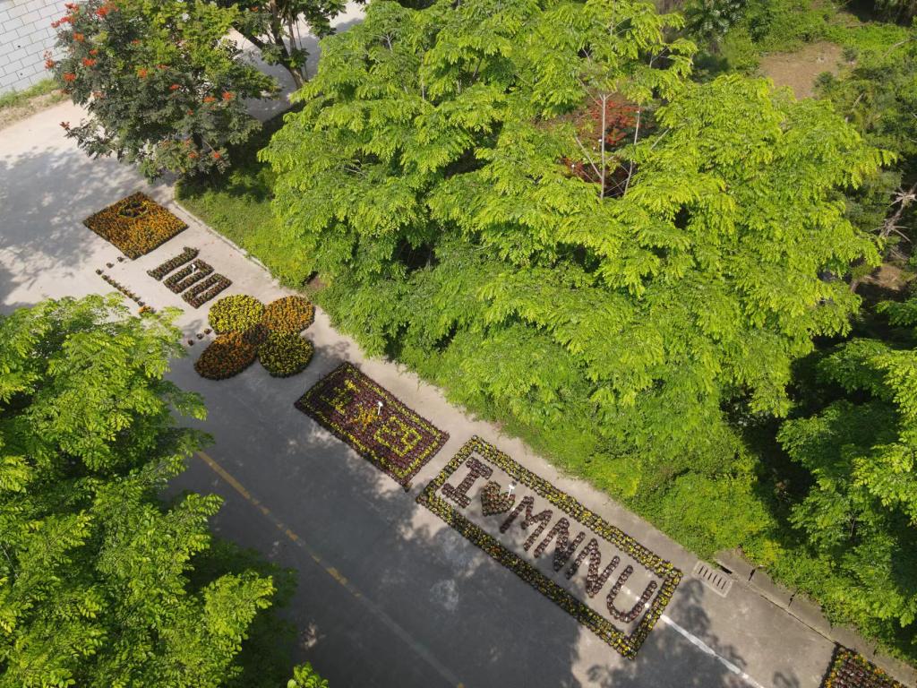 隨后舉行北江濱校區勞動教育實踐基地揭牌儀式,張龍海和生物科學與技術學院院長陸鑾眉共同為實踐基地揭牌。最后,參加活動的領導共同為花卉種植大賽獲獎班級代表頒獎,全體人員一起參觀學生花卉種植大賽作品展。