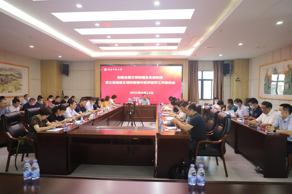 會(huì)上,學(xué)校創(chuàng)建第三屆省級(jí)文明校園工作領(lǐng)導(dǎo)小組辦公室主任,宣傳部、統(tǒng)戰(zhàn)部部長(zhǎng)徐繼紅匯報(bào)了學(xué)校創(chuàng)建文明校園工作的進(jìn)展情況、取得的成效、存在的問題及薄弱環(huán)節(jié)等,分析了當(dāng)前學(xué)校推進(jìn)文明校園創(chuàng)建工作的重點(diǎn)和難點(diǎn),并對(duì)文明校園測(cè)評(píng)體系指標(biāo)點(diǎn)進(jìn)行精準(zhǔn)對(duì)標(biāo),提出了下一步創(chuàng)建工作舉措。