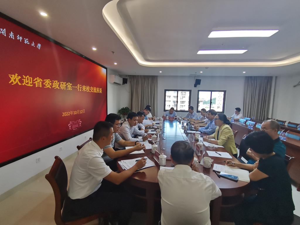 10月12日下午,省委政研室臺港澳僑處處長張其順一行來我校就閩臺產業融合發展課題開展調研交流。調研座談會在科技樓北1507會議室舉行。會議由校黨委常委、副校長張龍海主持。