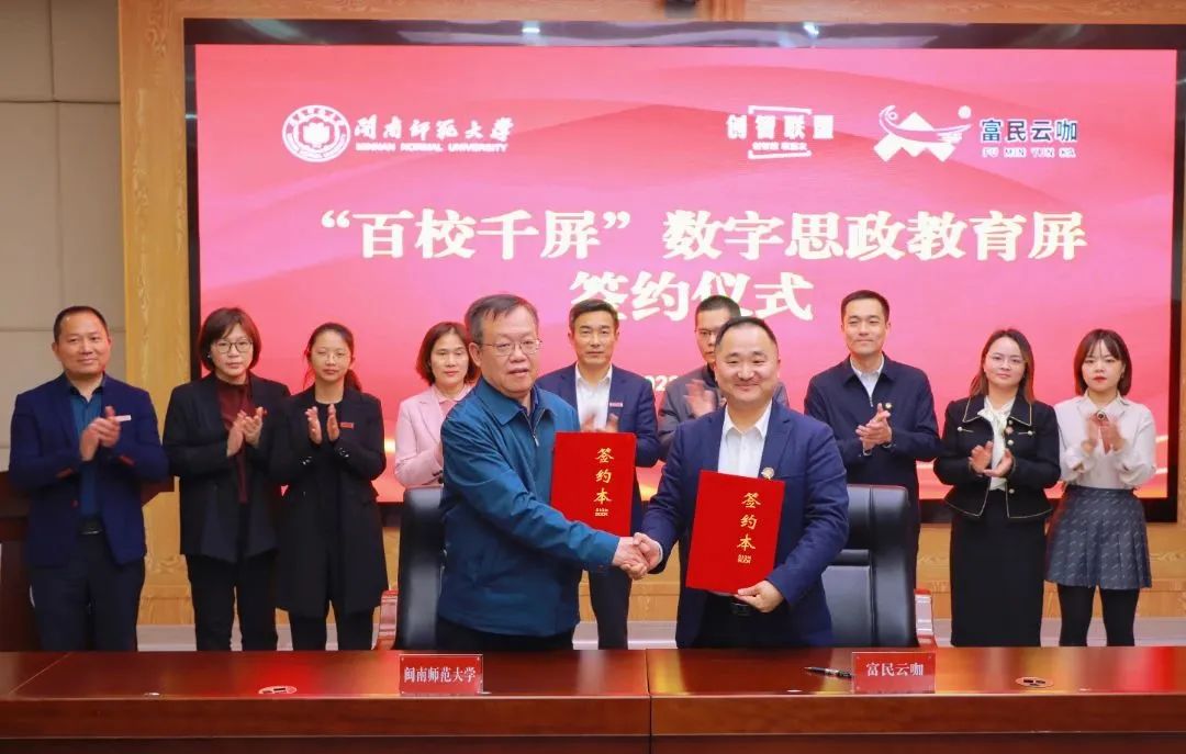 吳彬鏹和徐天白分別致辭。吳彬鏹介紹了近年來閩南師范大學運用數字化手段為思想政治工作賦能的舉措。他表示,數字思政教育屏助學項目契合新時代高校“大思政”格局構建要求,契合以數字化賦能思政工作的發展趨勢,拓展了學校思政宣傳教育新陣地,有利于學校進一步構建完善線上線下、大屏小屏一體的思政平臺矩陣。希望校企雙方進一步深化產教融合協同育人機制,共同搭建校企合作新平臺,攜手為教育事業高質量發展貢獻力量。