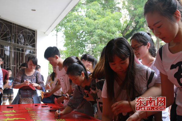 東南網漳州9月5日訊(陳小環 藝術學院供圖 本網記者 陳惠華)9月2日上午,由藝術學院主辦的“紀念中國人民抗日戰爭暨世界反法西斯戰爭勝利70周年”主題簽名儀式在藝術學院一樓舉行。校黨委書記林曉峰、黨委副書記吳彬鏹,黨委宣傳部、藝術學院領導,及黨員及師生代表參加了儀式。