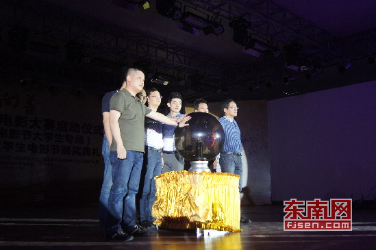 其后,華天隆集團董事長助理陳振輝和閩南師范大學李順興副校長先后致辭。閩南師范大學副校長李順興、漳州電視臺副總編陳俊杰 、華天隆集團董事長助理陳振輝 、大千傳媒總經理蔡英凱等領導共同觸摸水晶球啟動了“向上向善”福建省首屆大學生微電影大賽暨第二屆金海峽大學生國際微電影節大學生專場。