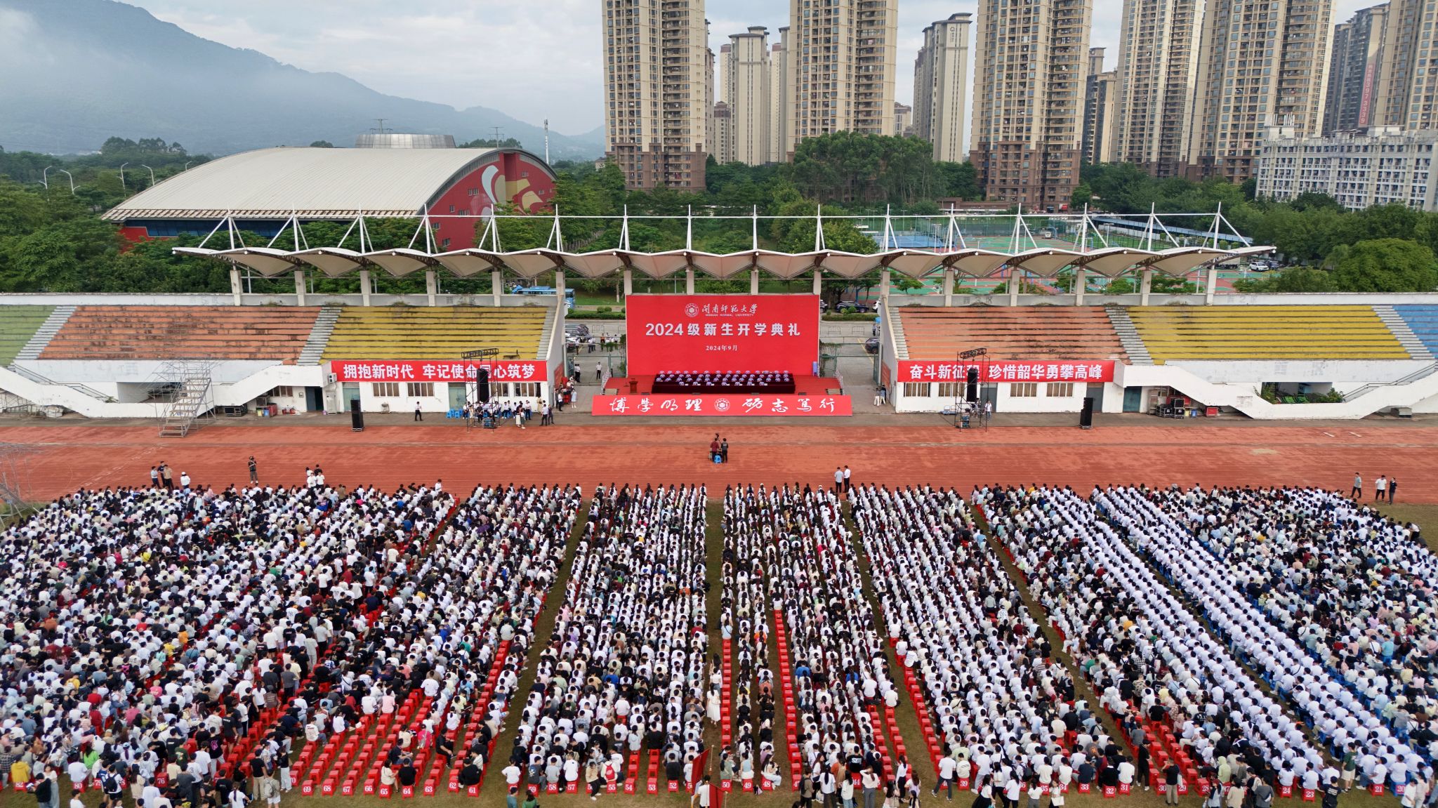 學(xué)校各機(jī)關(guān)、教輔單位主要負(fù)責(zé)人,各學(xué)院黨政主要負(fù)責(zé)人、教師代表、新生輔導(dǎo)員和4900多名本科新生,800多名碩士、博士新生參加開學(xué)典禮。